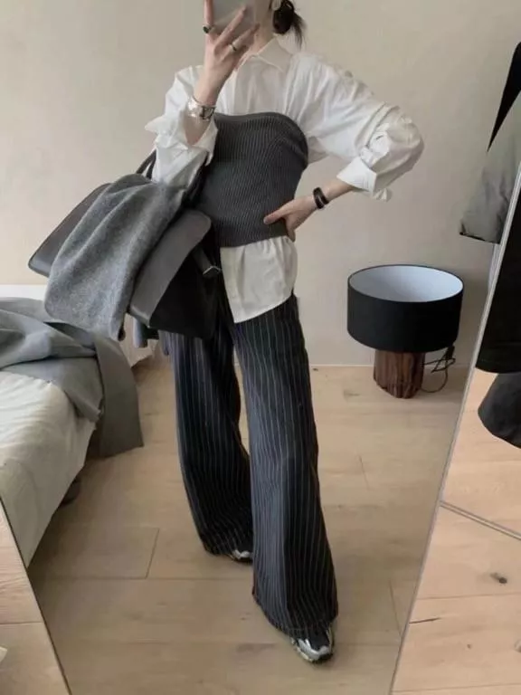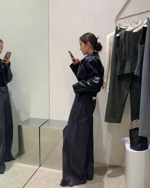 這件直條紋牛仔褲